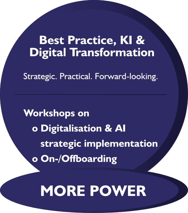 Unsere Workshops richten sich an HR-Fachpersonen, die die digitale Transformation aktiv vorantreiben möchten. Praxisnah vermitteln wir, wie Digitalisierung und KI, HR-Prozesse effizienter, moderner und wirkungsvoller gestalten.